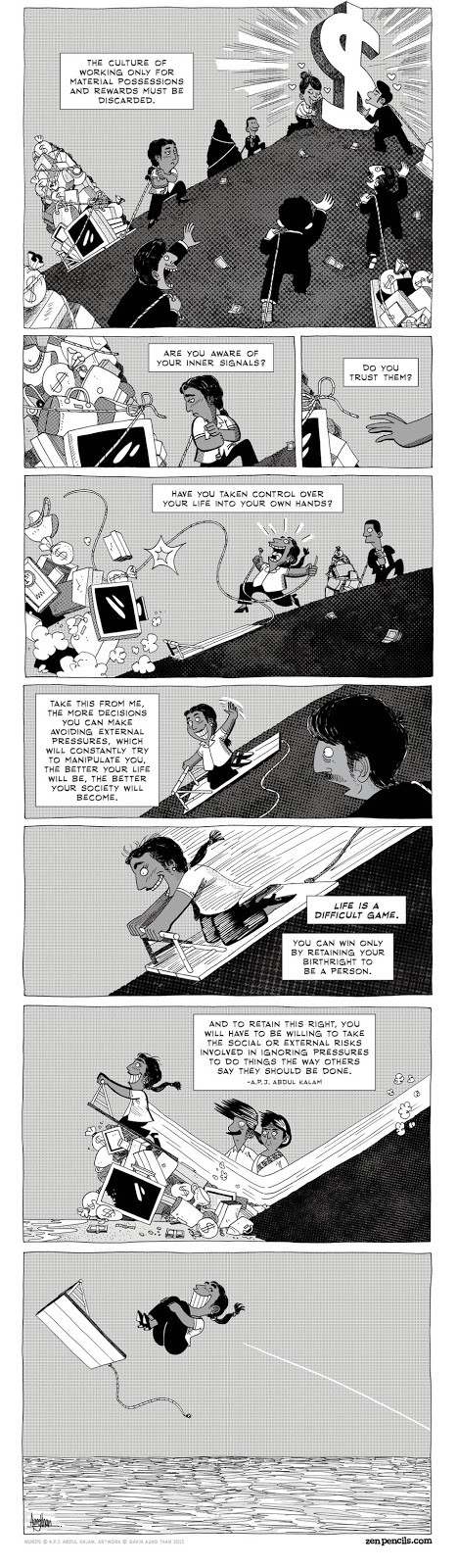 This above cartoon strip originally appeared on Zen Pencils and is reprinted here with permission from artist Gavin Aung Than. Gavin is a freelance cartoonist based in Melbourne, Australia. After working in the corporate graphic design industry for 8 years he quit to focus on his true passion, drawing cartoons. Gavin launched Zen Pencils at the start of 2012, a cartoon blog which adapts inspirational quotes into comic stories, and hasn’t looked back since.
